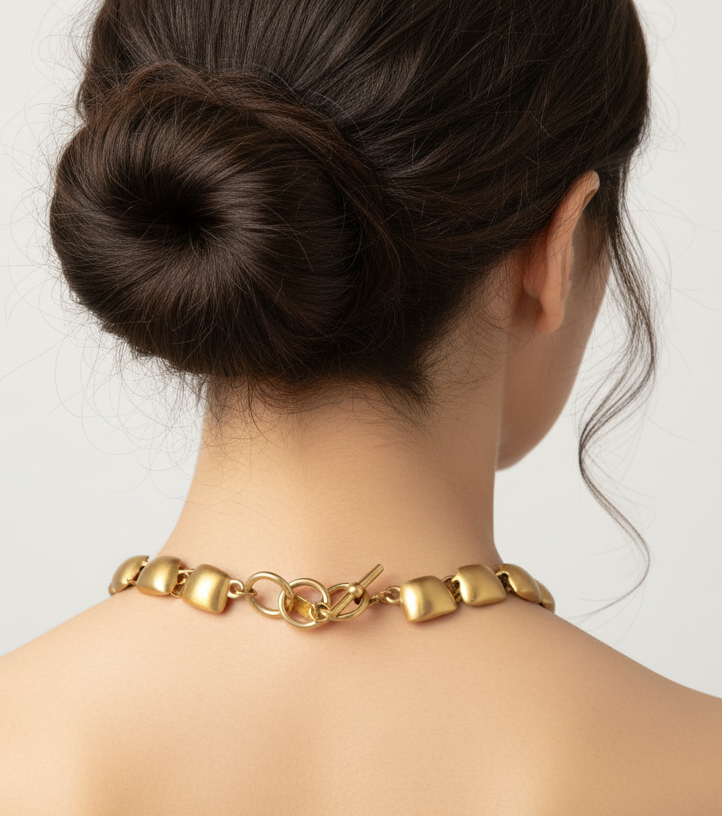 This reworked vintage chain with a Vintage Gold Tone Toggle Necklace Choker is a stunning addition to any outfit.