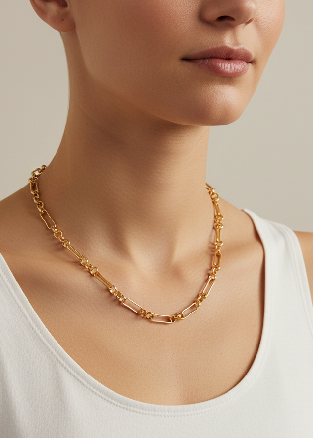 18k Gold filled long and short paperclip chain. this is one bold but made to be light and easy to wear .
