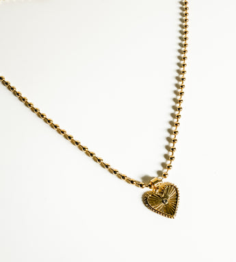 The Bella beaded heart charm exudes elegance with its beautiful beaded chain and delicate etched heart charm.