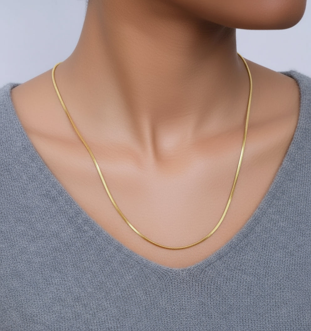 This beautiful cocoon herringbone chain is a classic piece that will layer well or mix with charms