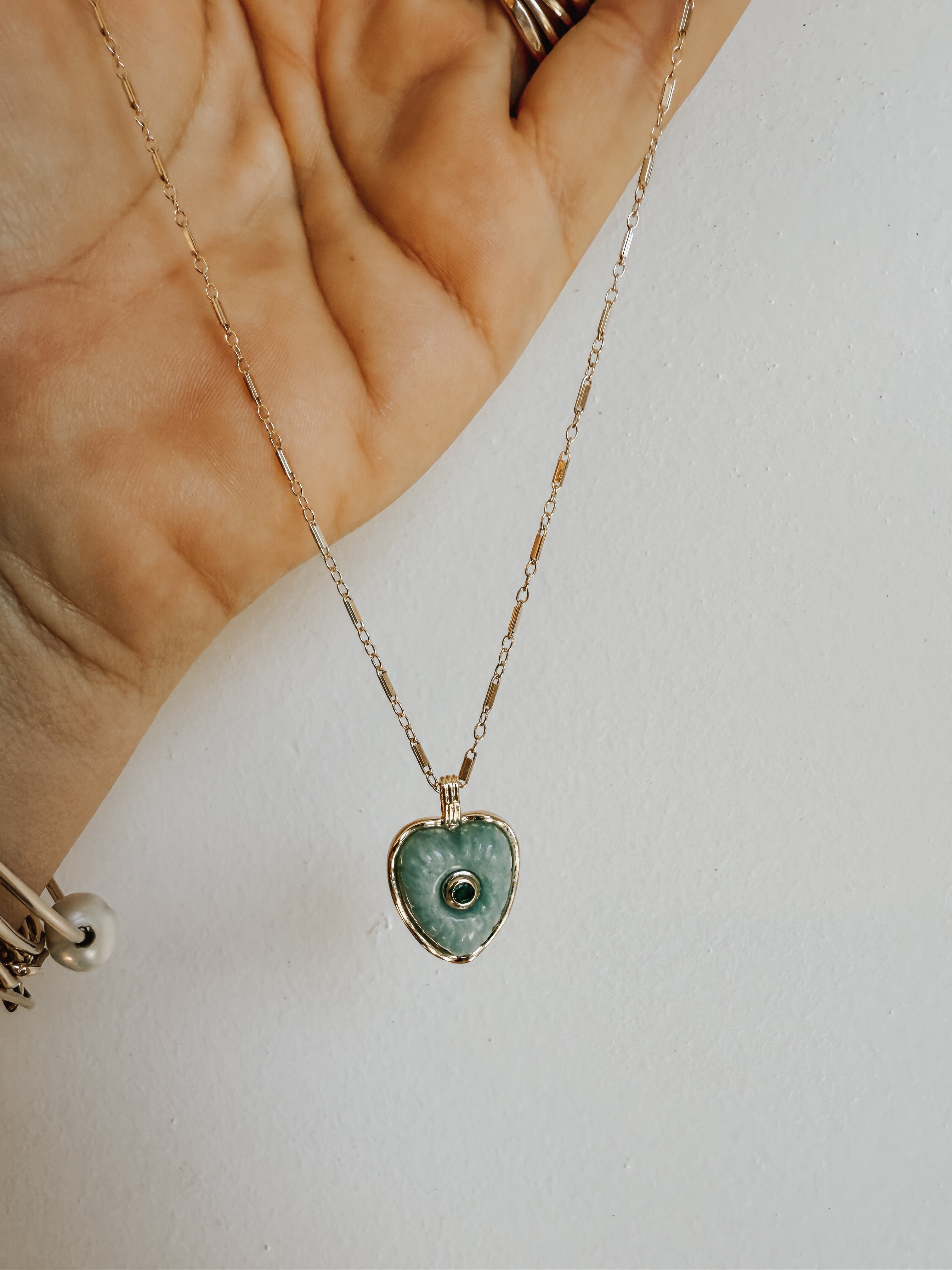 A stunning jewelry piece, the beautiful mini vintage paperclip chain with the green agate charm and mini stone inlayed.