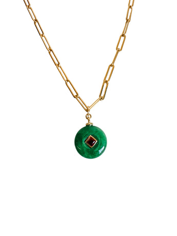 Medium Riley chain with a beautiful green charm with a deep red diamond stone inlayed
