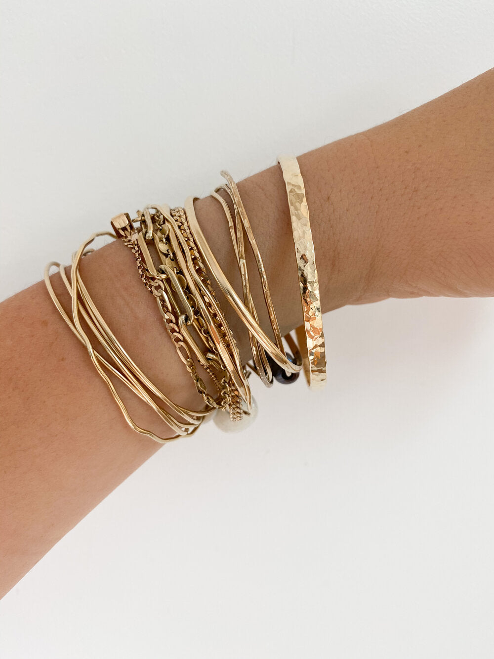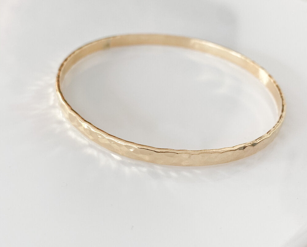 Gorgeous gold filled thick bangle.Hand made with love, each one is one of a kind. Please measure your wrist.size 8 inch circumference .. 2.5 inch diameter This stunner is handmade by Lizzie in her Manhattan Beach studio.NOTE: Gold-filled jewelry has a much higher amount of gold in it than gold-plated, making it more valuable (almost 100% more gold than gold-plated jewelry), more durable (won't chip or tarnish), safe for those with metal allergies and longer-lasting (10-30 years).