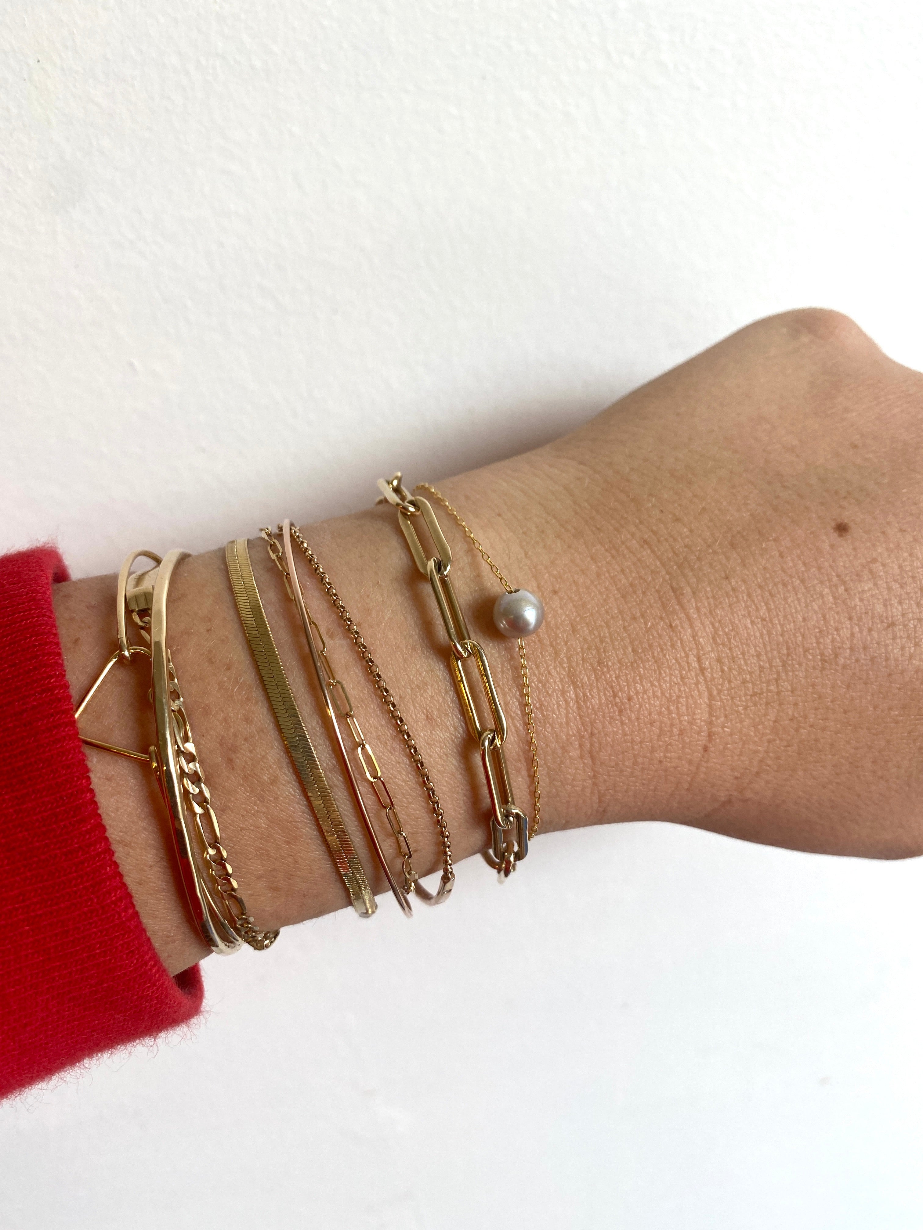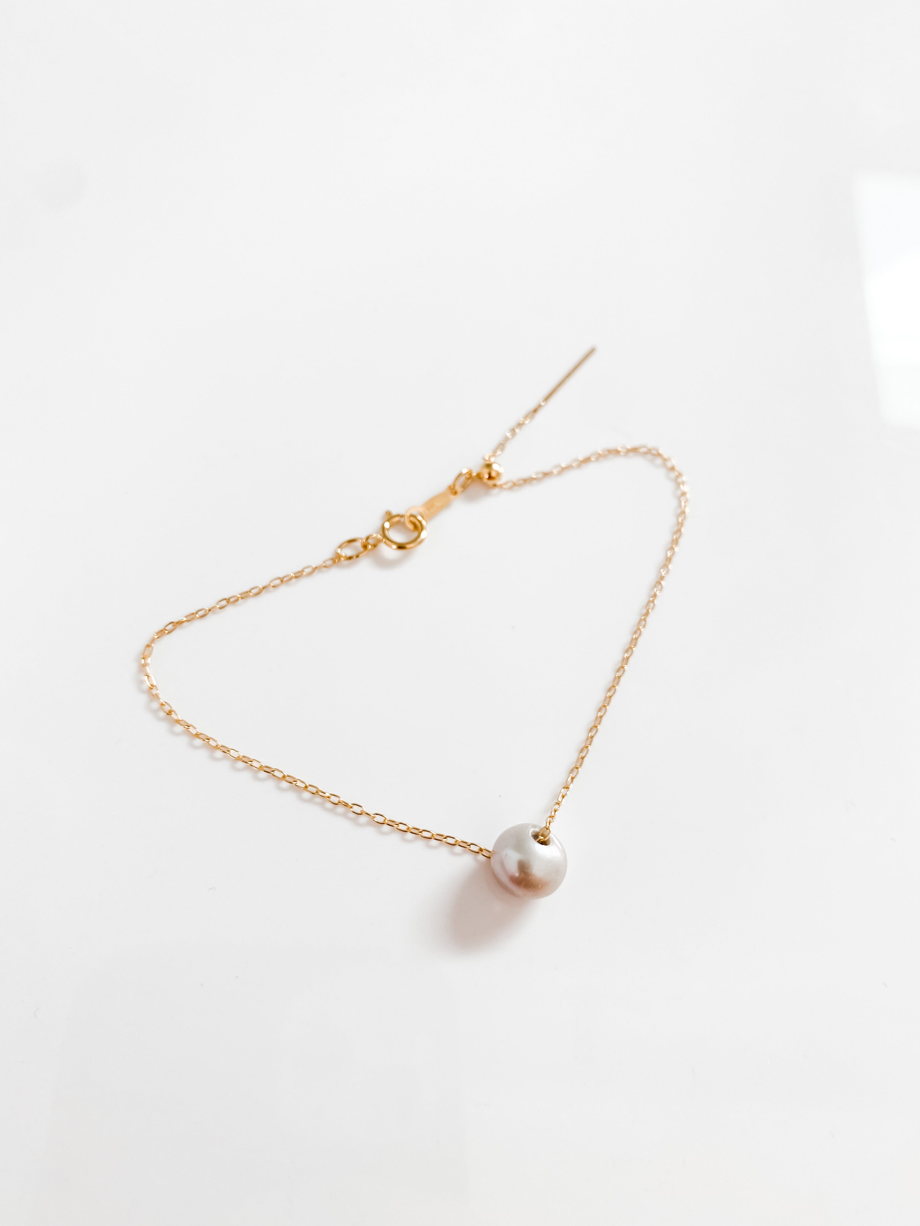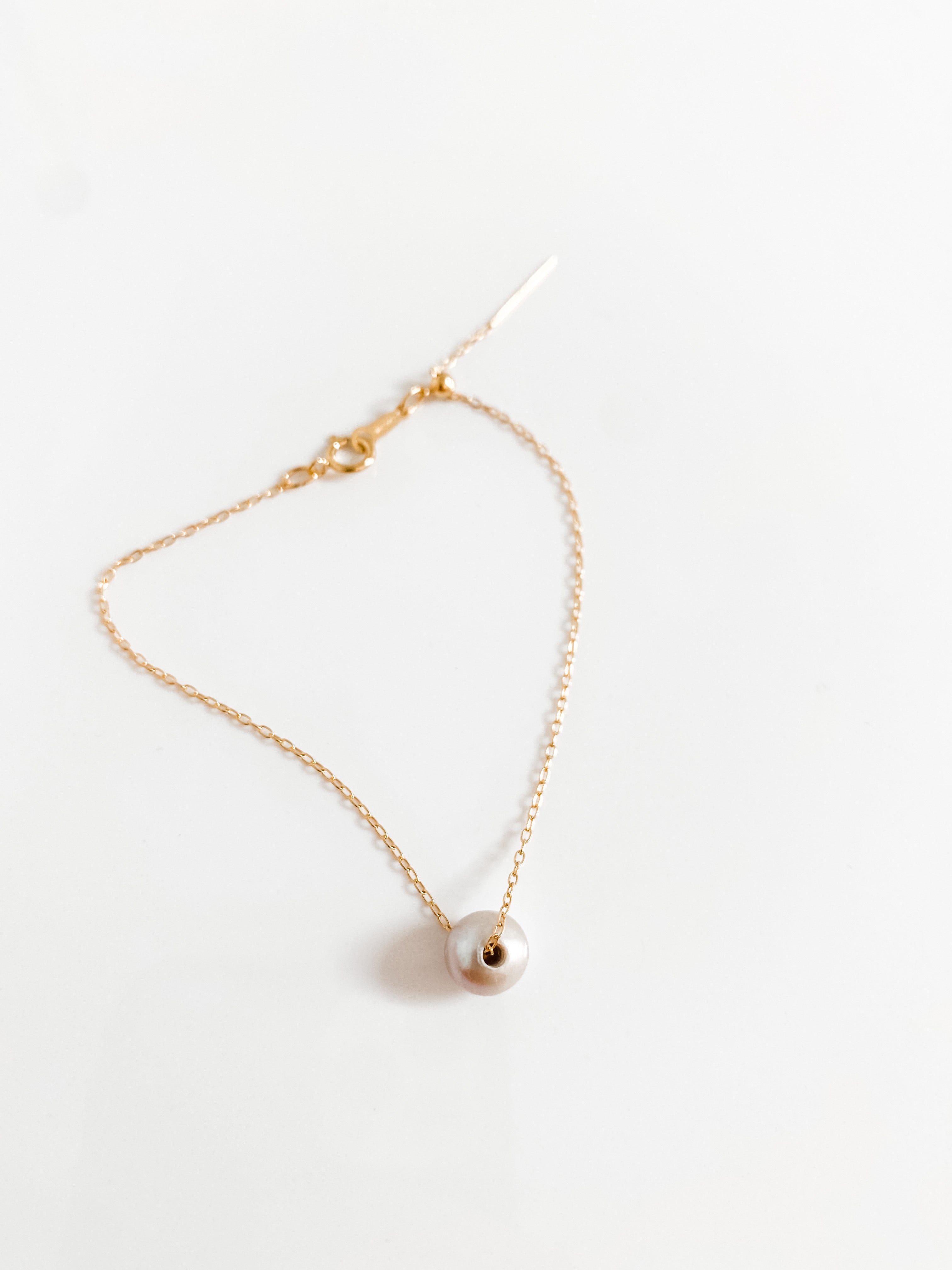 This super dainty adjustable cable chain bracelet is the cutest, with one tiny fresh water Tahitian pearl!