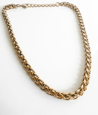 The braided vintage inspired long and short chain is approximately 16 1/2 inches with about a 2 inch extender.