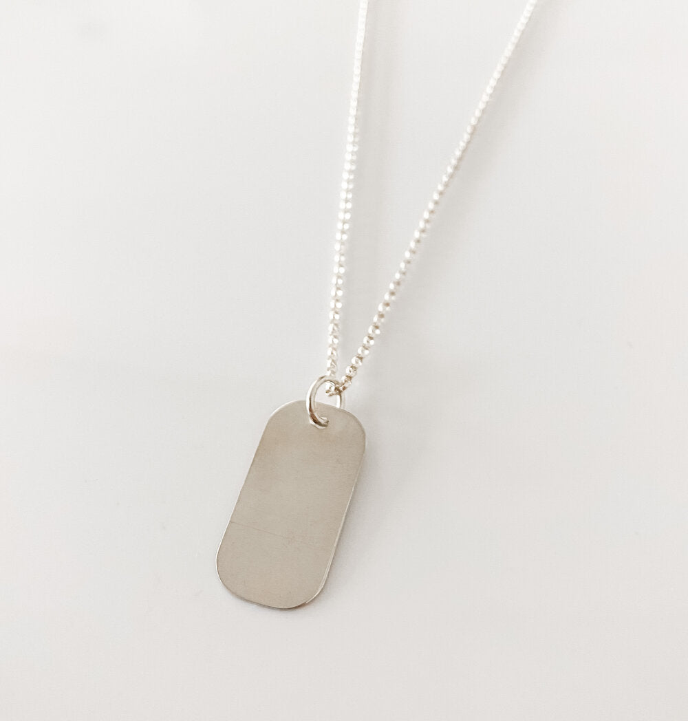 Sterling Silver dog tag necklace on a sterling silver rolo chain.Add custom stamping if you want! Leave stamping notes in the details at check out!