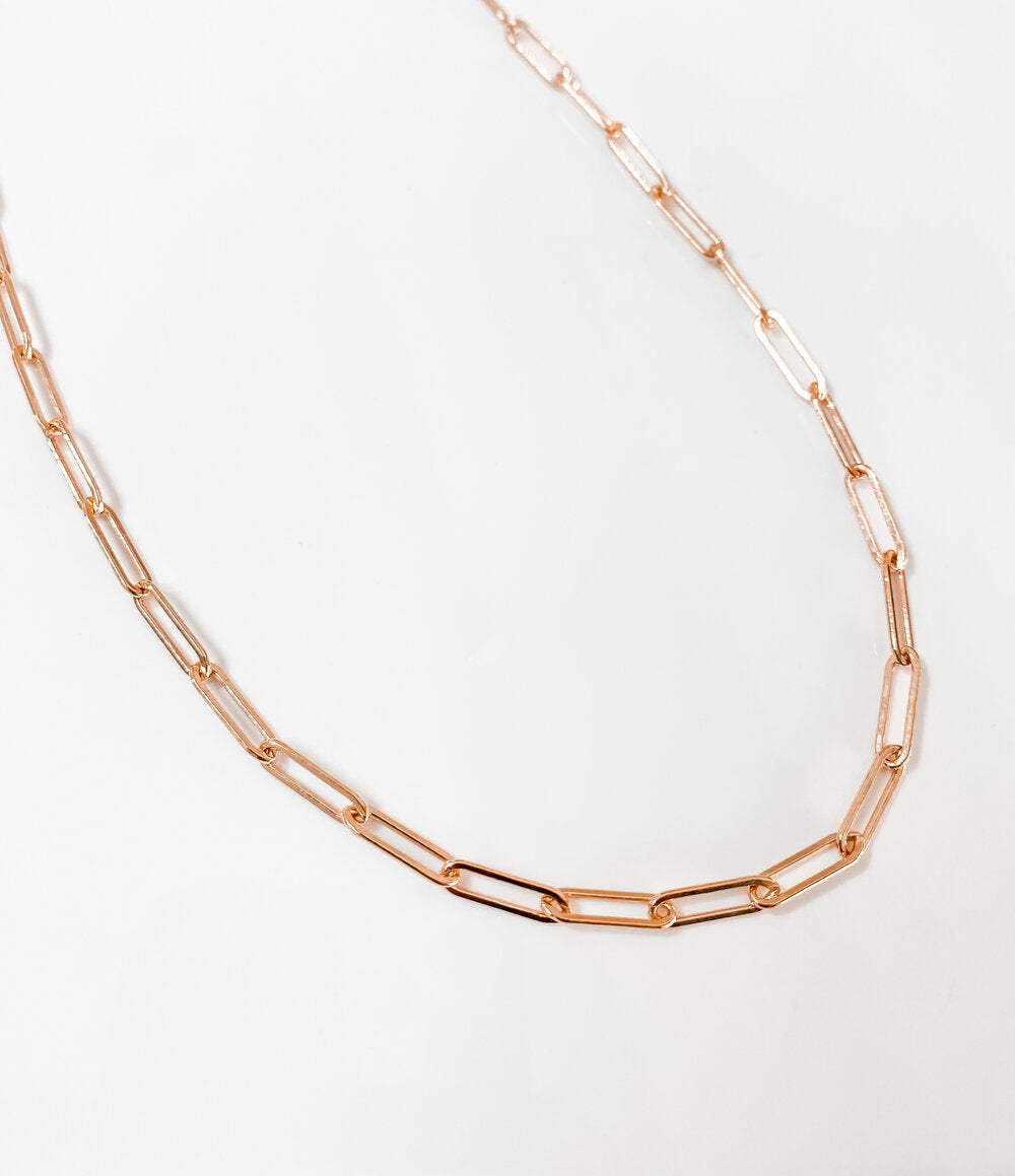 The rose gold medium Riley chain is the cutest layering necklace.NOTE: RoseGold-filled jewelry has a much higher amount of gold in it than gold-plated, making it more valuable (almost 100% more gold than gold-plated jewelry), more durable (won't chip or tarnish), safe for those with metal allergies and longer-lasting (10-30 years).
