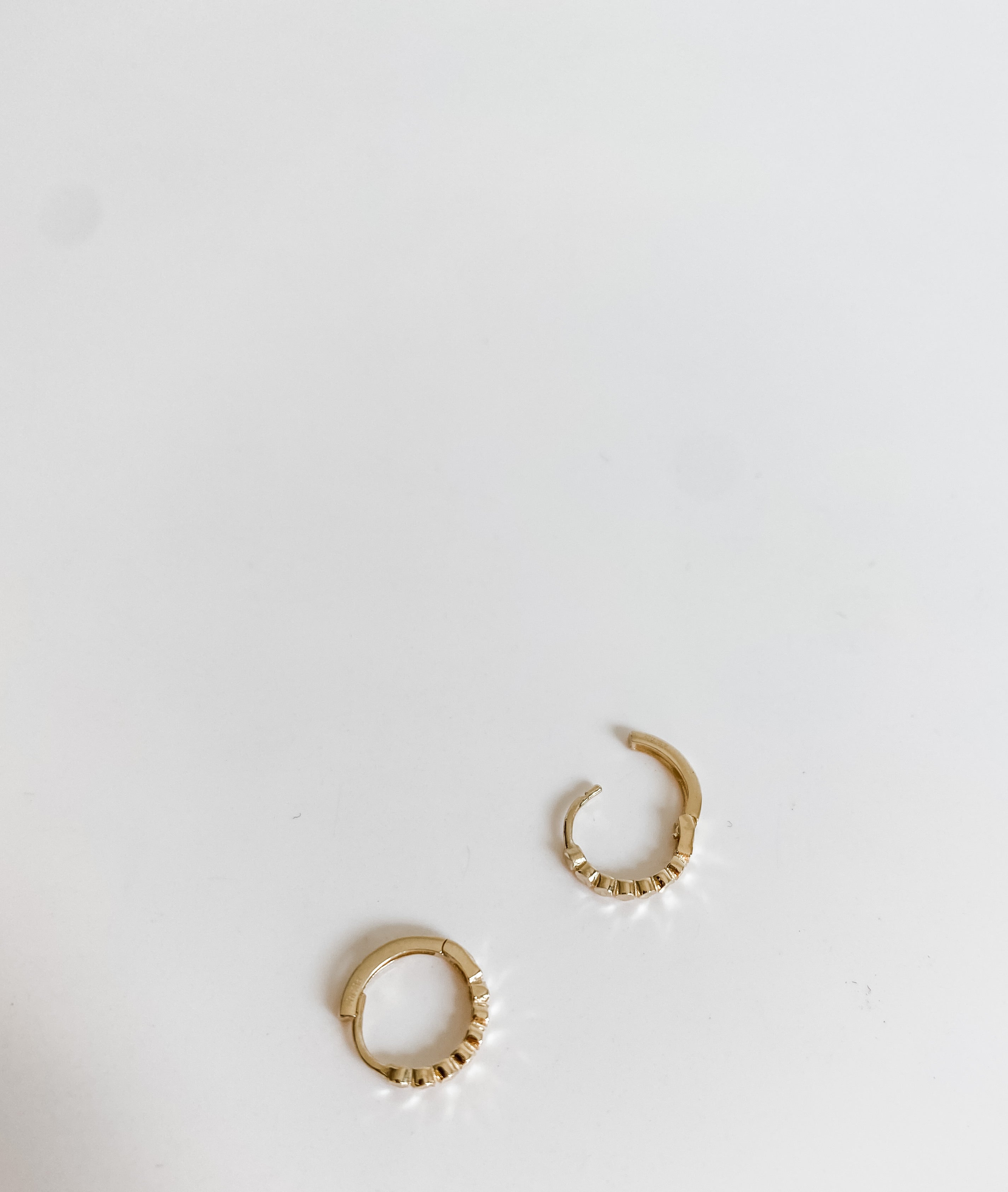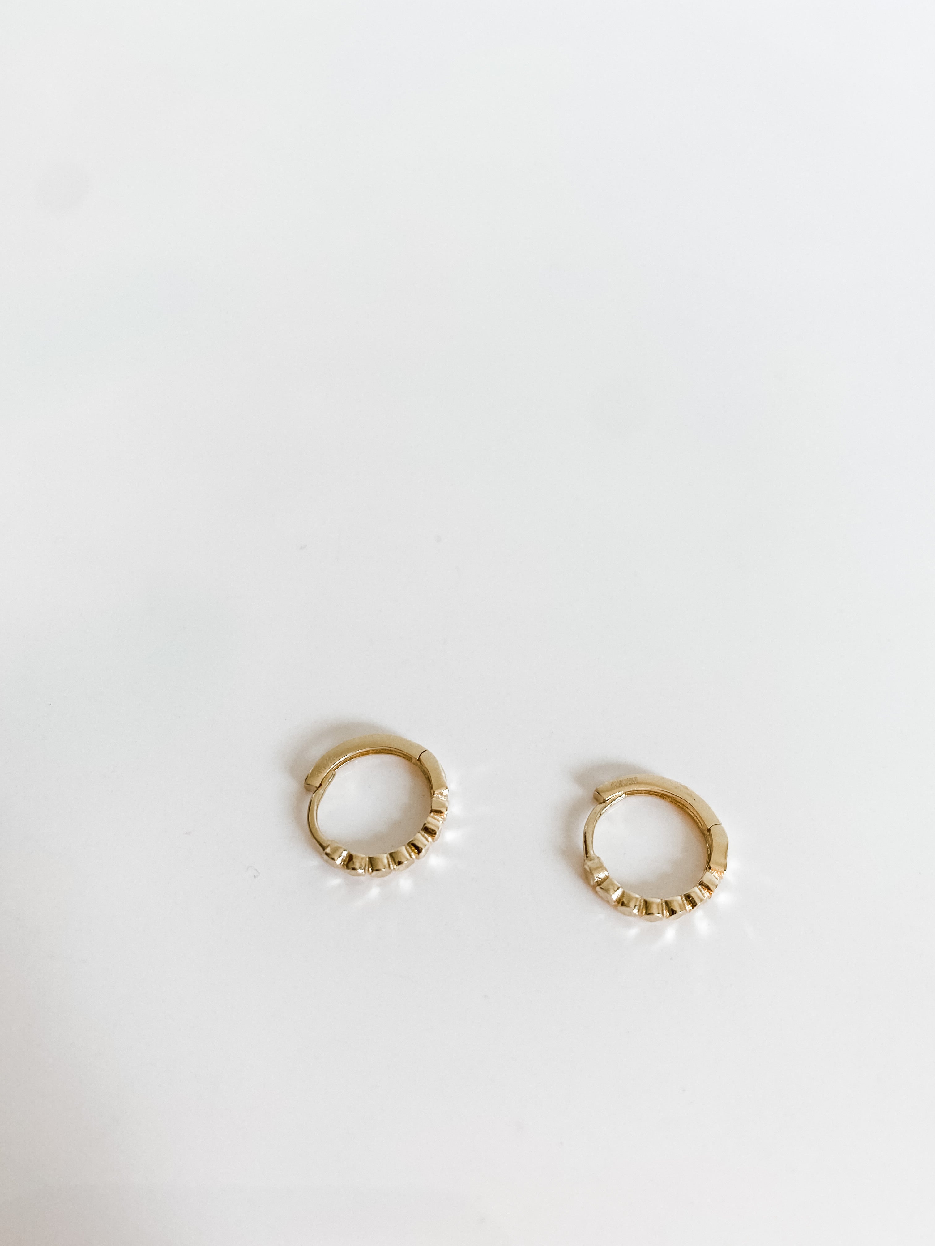 Huggies are designed to closely hug the ear, Huggie-style hoop earrings deliver a subtle but eye-catching look. This pair of 14-karat yellow gold Huggies features a faceted texture created by diamond-cutting the beaded front surface to create a row of irresistible light-catching flat, round facets. 11 x 11.7mm