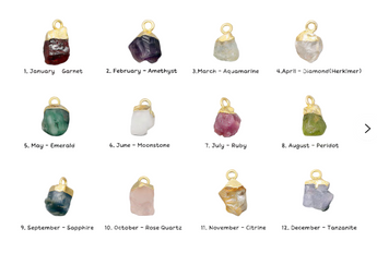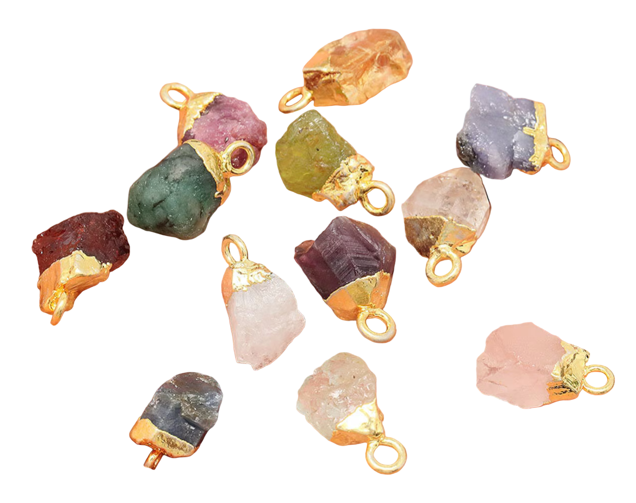 Raw 8-10mm birthstone charms with gold foil wrap details.
